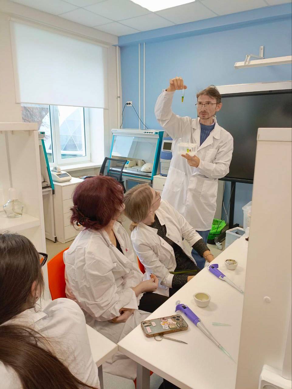 Занятия проводили заведующий кафедрой микробиологии, физиологии растений СГУ, д.б.н. Денис Валерьевич Уткин и доцент кафедры генетики СГУ, к.б.н., член жюри ВСОШ по биологии Эльмира Исмаиловна Кайбелева.