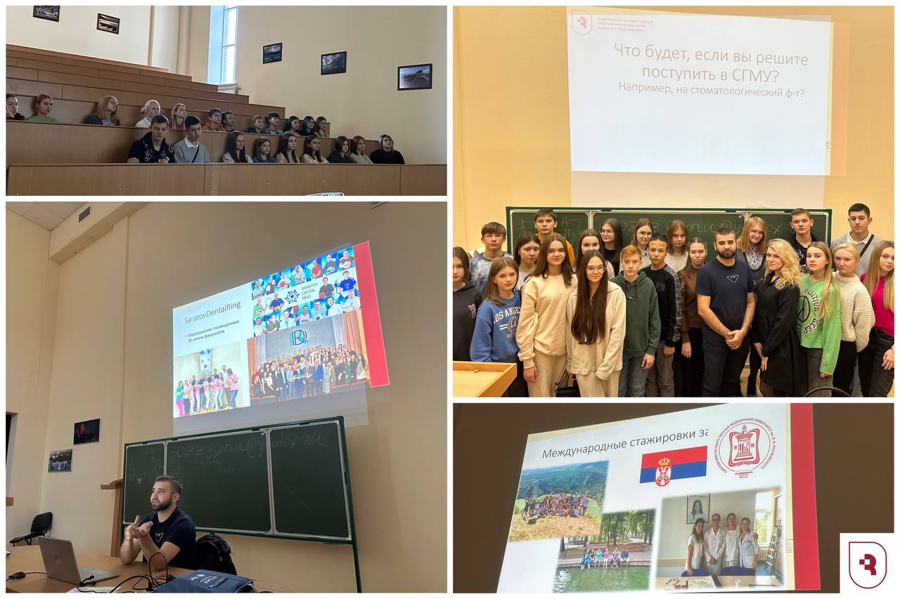 Ассистент кафедры — Бычков Родион Дамирович — познакомил слушателей со структурой медицинского университета, рассказал о направлениях обучения стоматологического факультета. Будущие студенты узнали о мероприятиях, которые организует университет, о международных стажировках и студенческих мероприятиях.