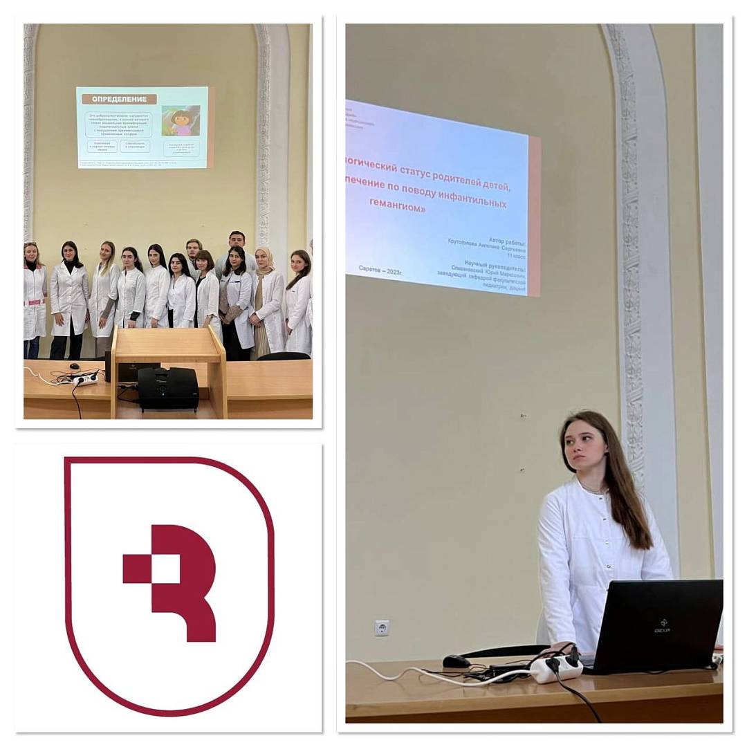 Тема выступления Ангелины «Психотест известной болезни» (научный руководитель заведующий кафедрой факультетской педиатрии, директор клиники факультетской педиатрии СГМУ, кандидат медицинских наук, доцент Юрий Спиваковский.